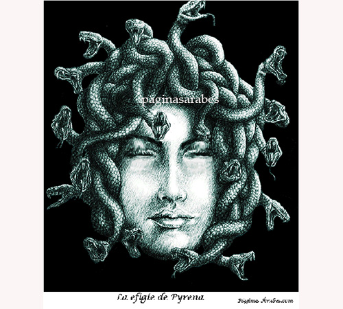 Y cada Serpiente, al separarse de las restantes guedejas, formaba en el aire con su cuerpo dos curvas contrapuestas, como una ese (S), que le permitía anunciar el siguiente movimiento: el ataque mortal. Y las dos Serpientes de la Frente, pese a ser más pequeñas, también evidenciaban idéntica actitud agresiva.